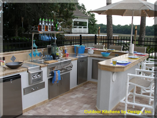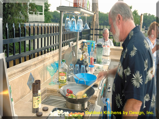 -Plan refrigeration, cooking areas, storage and prep counters with the same efficiency of steps and convenience of indoor kitchens, but don't isolate the cook from the rest of the gathering.